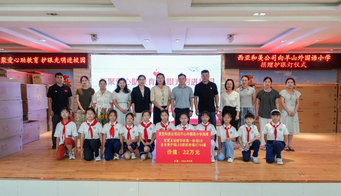 9月,新學(xué)期伊始,西亞和美公司公益助學(xué)活動(dòng)走進(jìn)信陽(yáng)市羊山外國(guó)語(yǔ)小學(xué),首批捐贈(zèng)的750套全光譜護(hù)眼LED防眩格柵燈和6臺(tái)智慧互動(dòng)教學(xué)終端一體機(jī)正式投入使用。這批設(shè)備不僅提升了教室的光線環(huán)境,也為師生帶來(lái)了更智能、更健康的教學(xué)體驗(yàn),這是西亞連續(xù)二十一年來(lái)推行愛(ài)心助學(xué)行動(dòng)的又一暖心舉措。